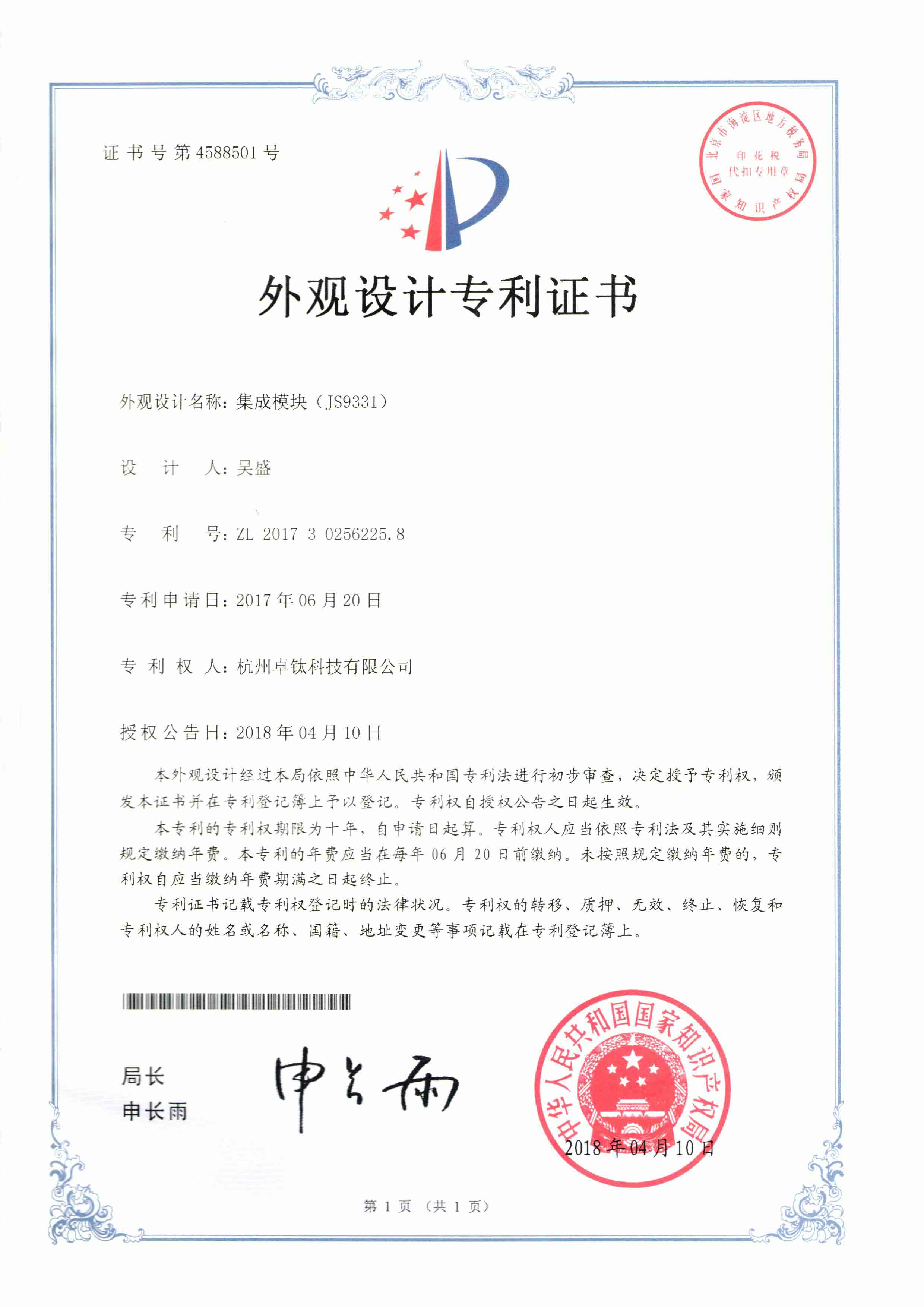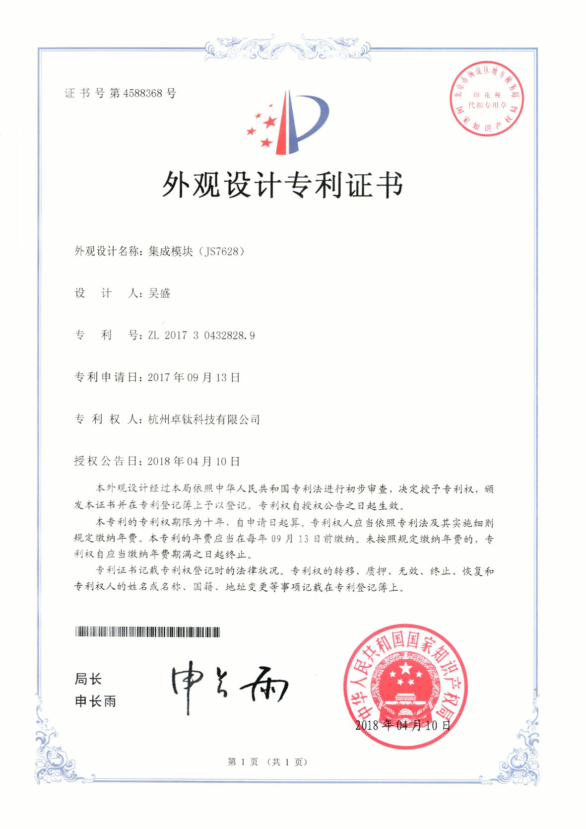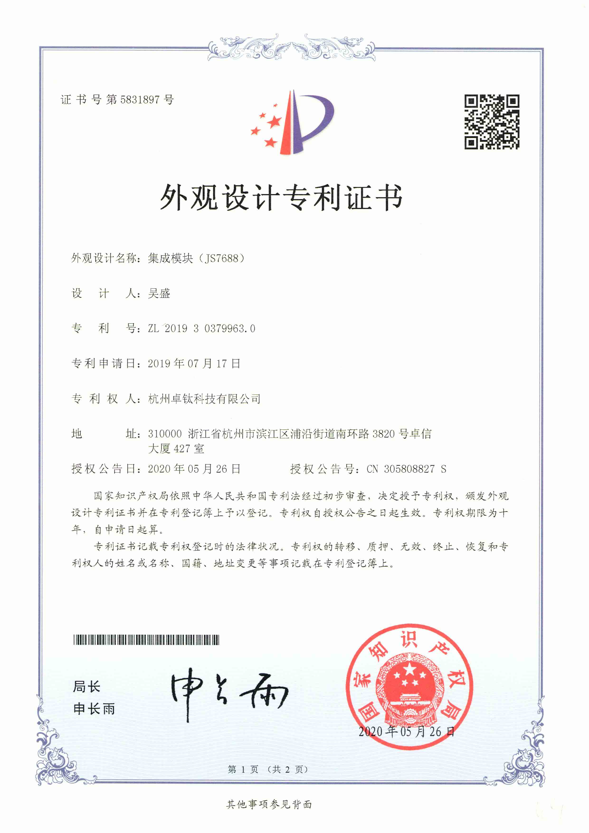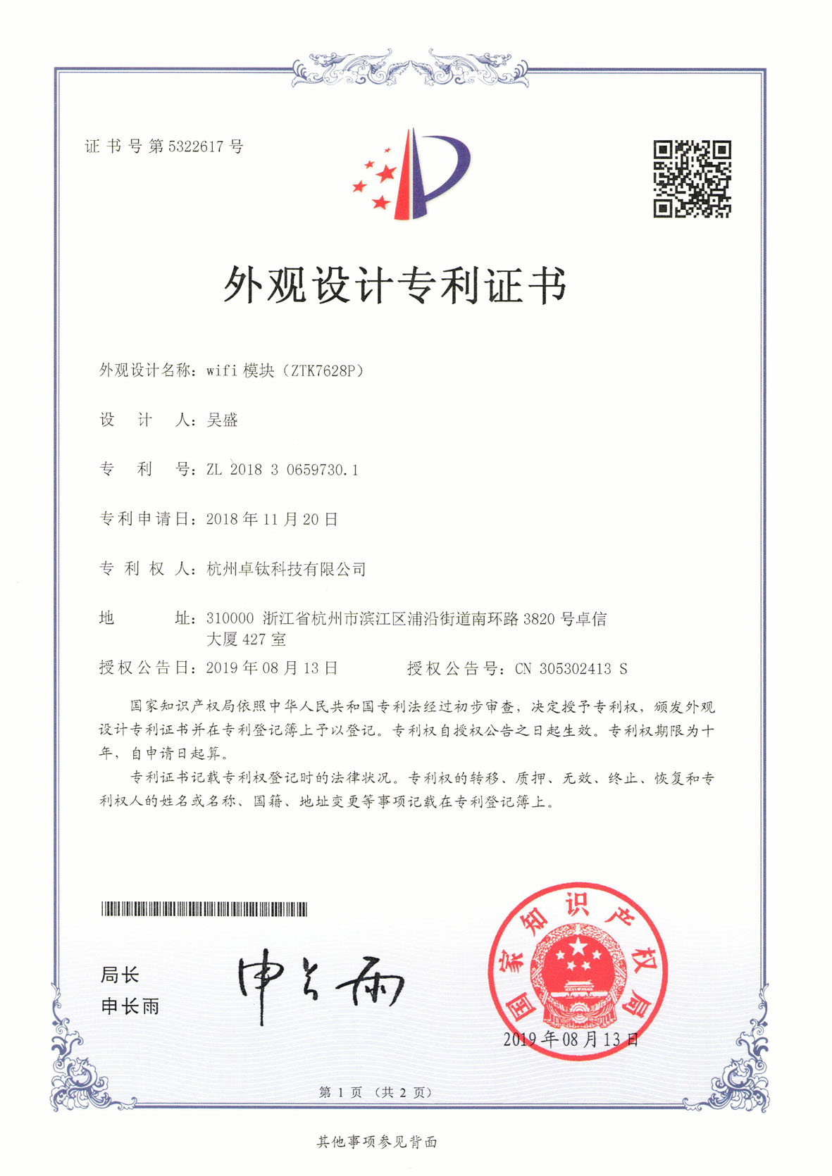 专利资质证书