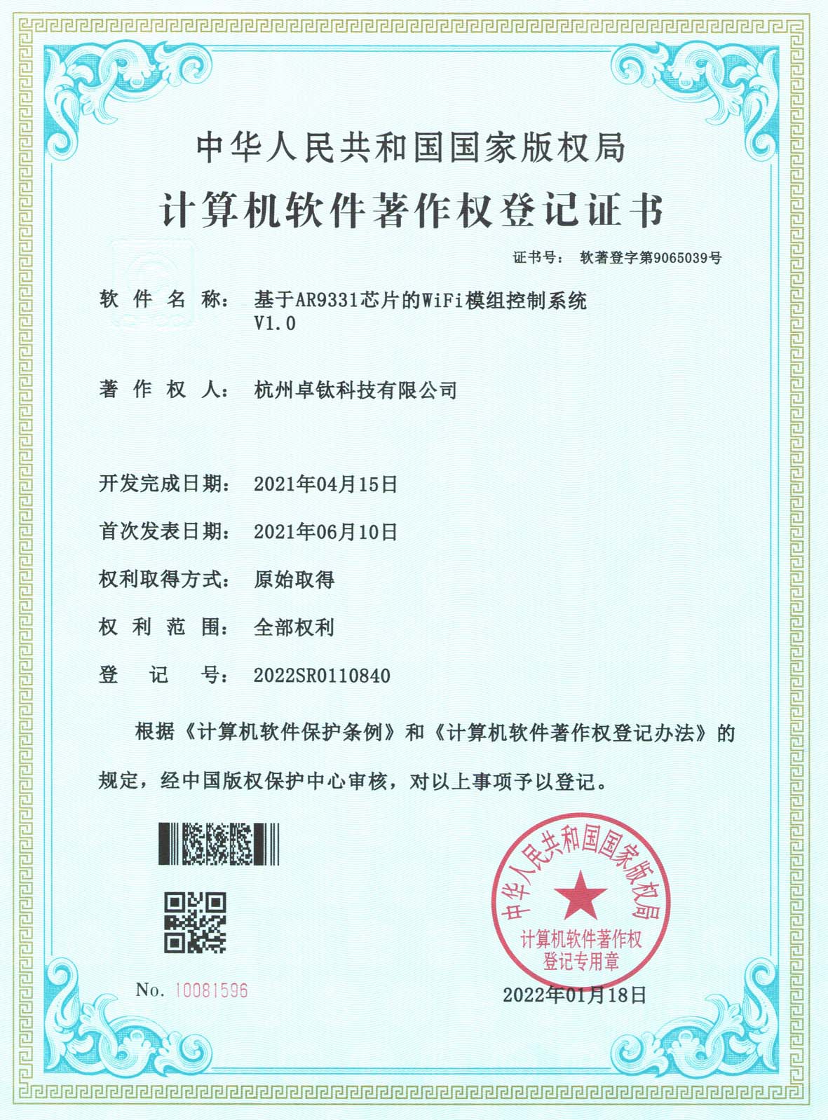 软件著作权证书